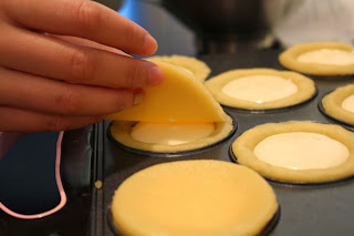 5. Place the cut out dough pieces into the Babycakes Cupcake Maker, and use the tools to push/shape the tart.